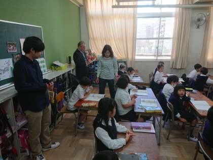 この授業を学力向上指導員の先生に視察していただき、教員の授業力向上に努めます。