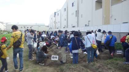 初めて掘る子どももいて、おいもはなかなか全貌を現しません。