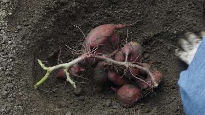 根気よく掘っていると、丸々と育ったサツマイモが出現!