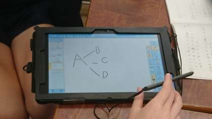 4人でタブレットを囲みながら、樹系図や表をつくって考えました。