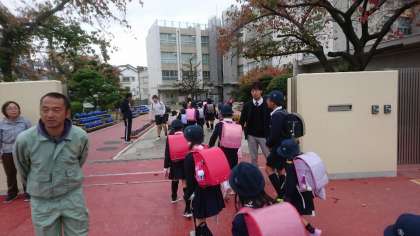 朝の気温が低い中、子どもたちは元気に登校しました。
