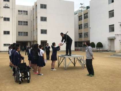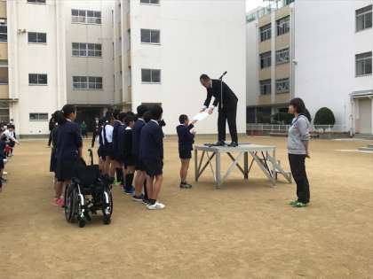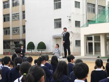 教頭先生からは、今週行われる学習発表会のお話がありました。また、朝の欠席連絡が増えています。早寝、早起き、しっかり朝食を取り、健全な生活で健康に気をつけるよう、お話がありました。
