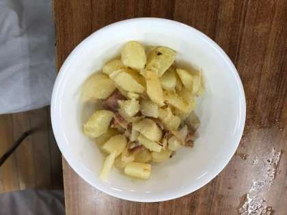 6年生は調理実習で「ジャーマンポテト」を作っています。