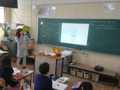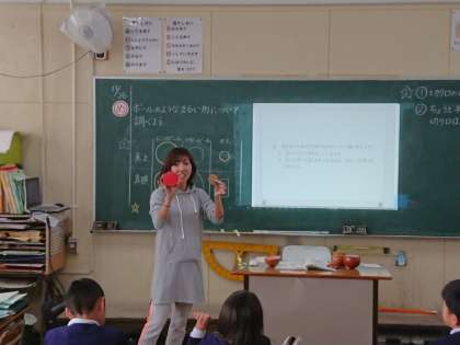 球などの立体について考えるときは、ICT機器を使うと効果的に学習できます。