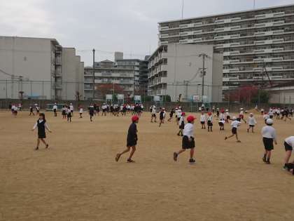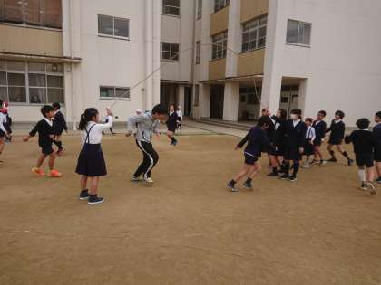 子どもたちは寒さに負けず、遊具やなわとび、おにごっこなどをして遊んでいます。