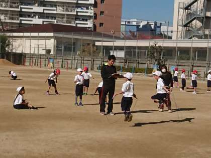 1年生の体育では、なわとびのテストを行いました。