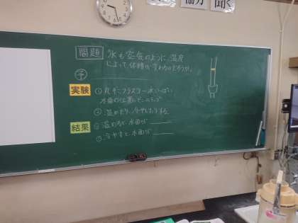 4年生の理科では、水も空気のように、温度によって体積が変わるか、実験で調べました。