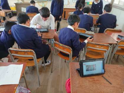 よりよい町を作っていくために、自分たちの考えをまとめ、プレゼンテーションを行う準備をしています。