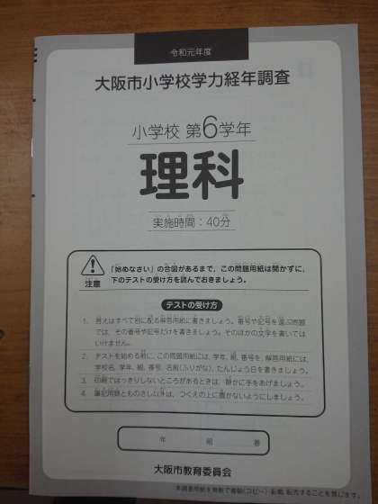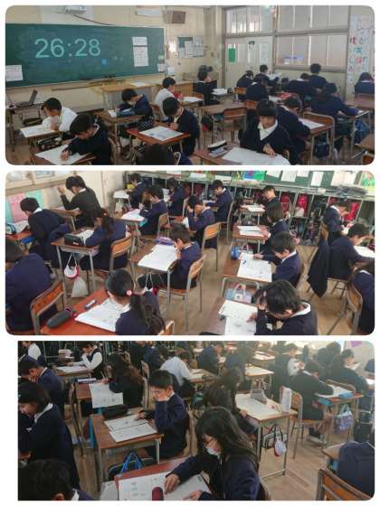 子どもたちは、これまで学習したことを思い出しながら、一生懸命、テストに取り組んでいました。