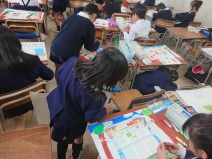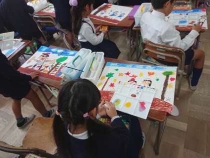 運動会やキッズプラザ、学習発表会などを絵に描きました。