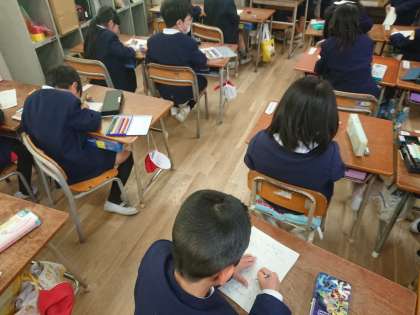 1年生の生活では、チューリップの球根を観察してスケッチにまとめました。