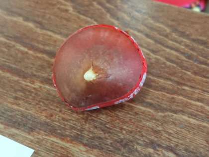 この球根を植えると、春にきれいなチューリップの花が咲きます。