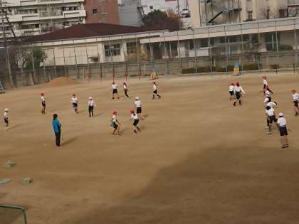 子どもたちは元気よく運動場を走り回っていました。