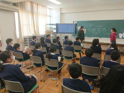 6年生の外国語活動では、「I eat 〜.」「I like 〜.」を学習しています。