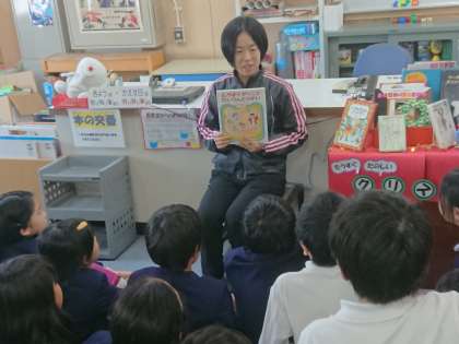 担任の先生が、子どもたちに絵本の読み聞かせを行っています。