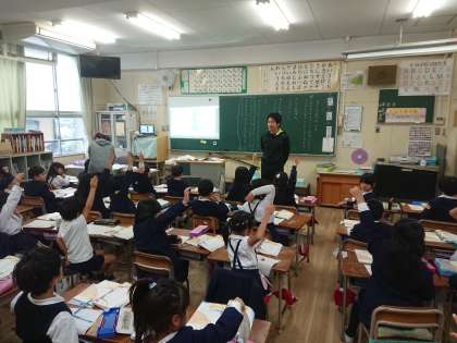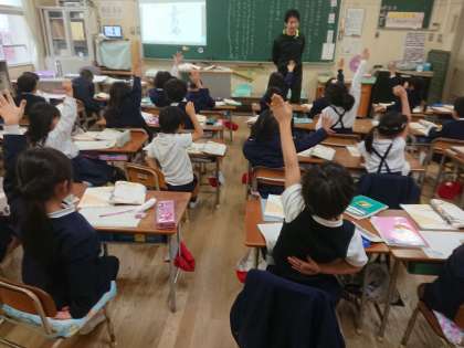 子どもたちは、手をあげるときには背筋をピンと伸ばしていました。