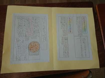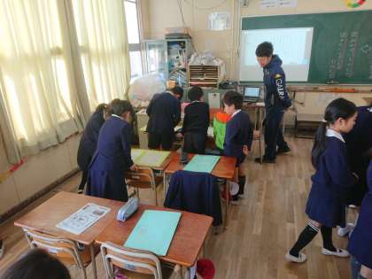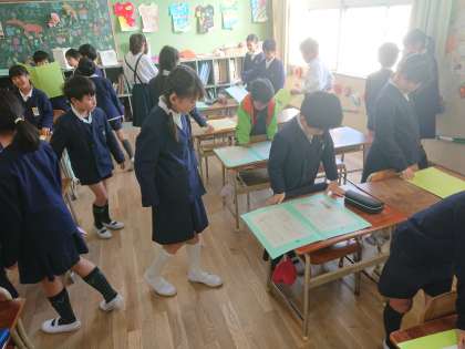 3年生の国語では、前回作成した「はたらく犬のリーフレット」を友だちどうして読みあっています。