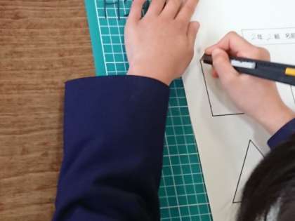 四角や三角の図を慎重に切っていきました。