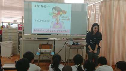 2年生は、発育測定の前に保健の勉強をしました。
