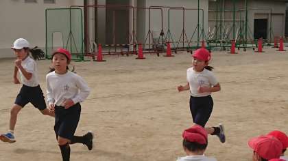 かけあし大会では、3年生は6年生と同じ距離を走ります。