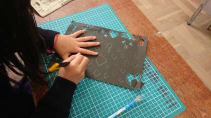 はじめてカッターナイフを使うので、子どもたちは集中して取り組んでいます。