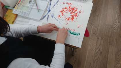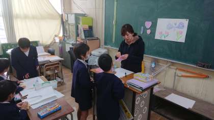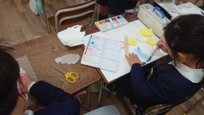 3年生の図工では、身のまわりのものを使って版画を作っています。