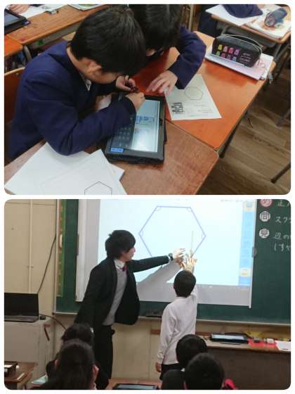 どうすれば正六角形が描けるのかを話し合いました。