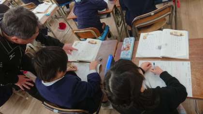 1年生の国語では、「歯がぬけたらどうするの」を読んで、イギリスとメキシコの似ているところと、ちがうところを見つけて、プリントにまとめました。