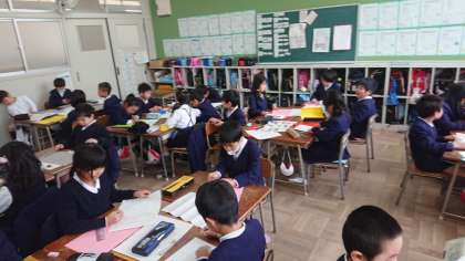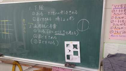 今日は、窓作りの練習をしたあと、画用紙にデザインしました。