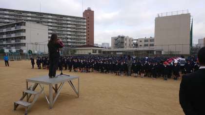 今日は、教頭先生がお話をされたあと、集会担当の先生から2月の生活目標「力をあわせてそうじをしよう」について、お話がありました。