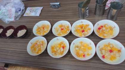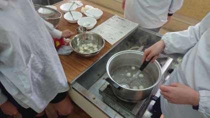 5年生の家庭科では、「白玉だんご」を作りました。