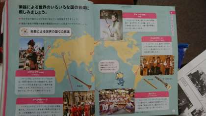 6年生の音楽では、楽器による世界の国々の音楽について学習しています。
