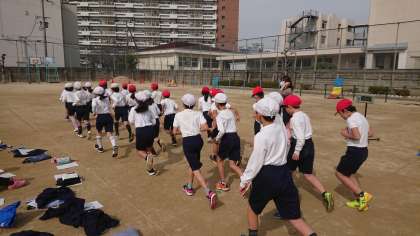 かけ足大会についての説明を受けたあと、運動場を20周走りました。