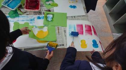 2年生の図工では、版画を作っています。