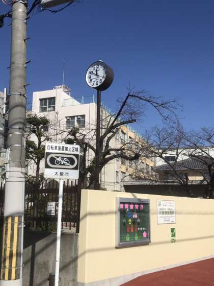 本校のPTAが11年間集めてきたベルマークを使って、正門前に時計を設置しました。