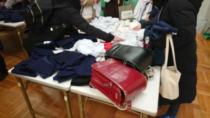 学習参観に先立って、標準服のリサイクルとPTA文庫の譲渡を行いました。
