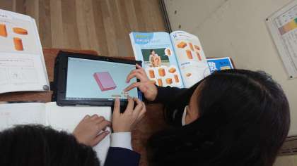 今日は、平面で囲まれている立体の性質を、タブレットを用いて調べました。