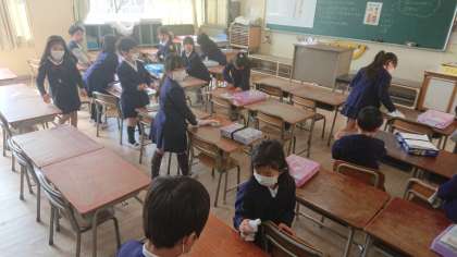 今日は学級の活動で、各自の荷物を持ち帰ったり、教室の清掃を行いました。