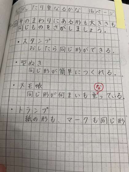 ・算数の教科書P.13のノート課題 問2の解答が「左」となっておりましたが、正しくは「右」です。また、教科書P.16のノート課題・メモ帳の説明文で「重っている」となっておりましたが、正しくは「重なっている」です。訂正よろしくお願いいたします。