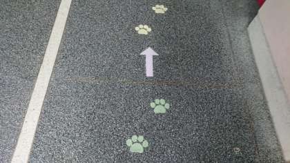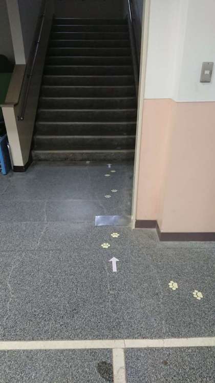 このあしあとをたどれば、1ねんせいの児童が迷うことなく教室に行くことができます。