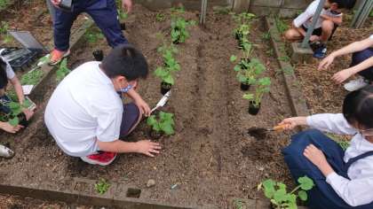 「おもちゃカボチャ」と「インゲン」の苗を植えました。