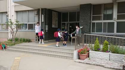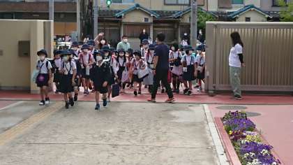 午前の部は、1,2,4年生の前半と3年1組の登校となっています。