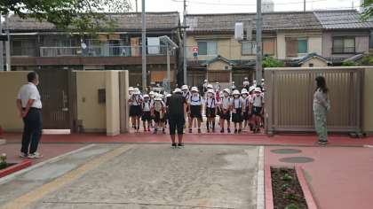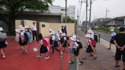 今日の前半の部の登校のようすです。