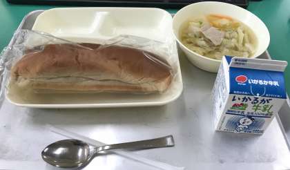 今日は、黒糖パン・牛乳