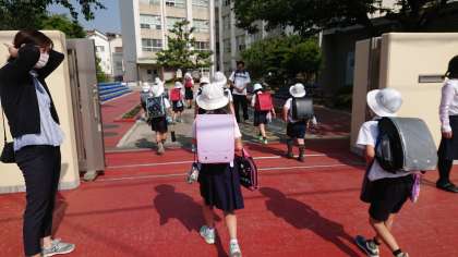 今日の前半の部の登校のようすです。