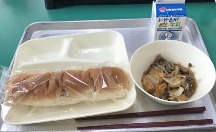 今日は、おさつパン・牛乳