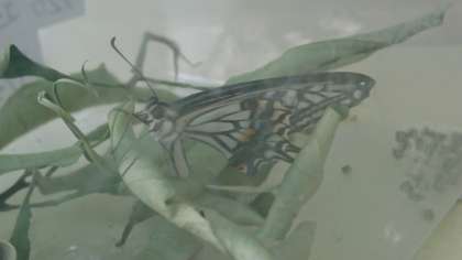 地域の方からいただき、3年生が育てているアゲハチョウが2羽、羽化しました。
