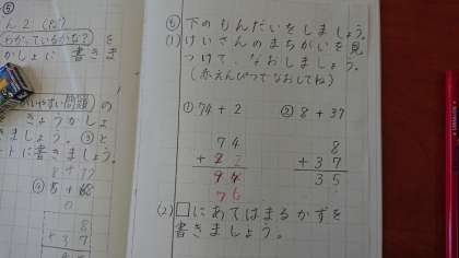 今日は計算のまちがいを見つけて、正しい計算に変えました。