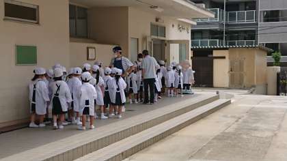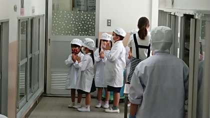 1年生が、初めて自分たちで給食の準備を行いました。