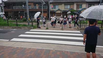 小雨の中の登校でしたが、子どもたちは安全に登校できました!!